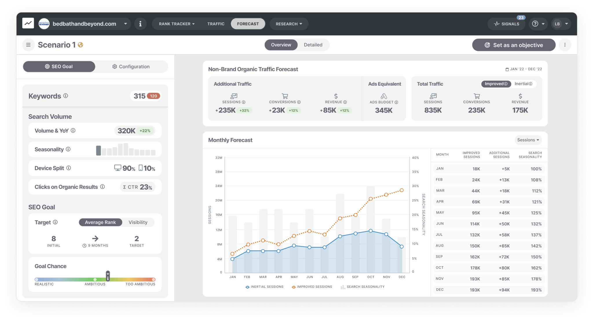 Discover how to translate SEO success into business results for validating your projects and getting your clients' buy-in. Create precise and reliable projections, set them as SEO objectives and track them.
